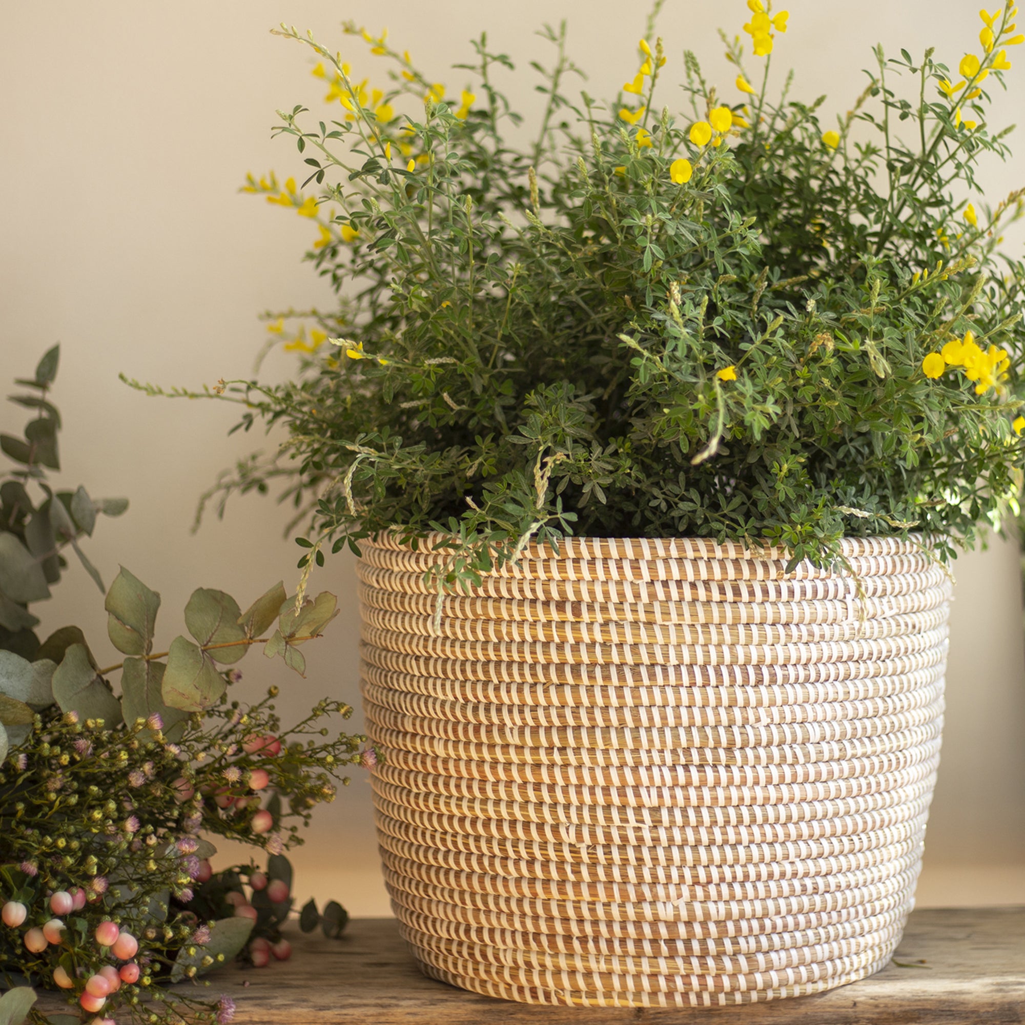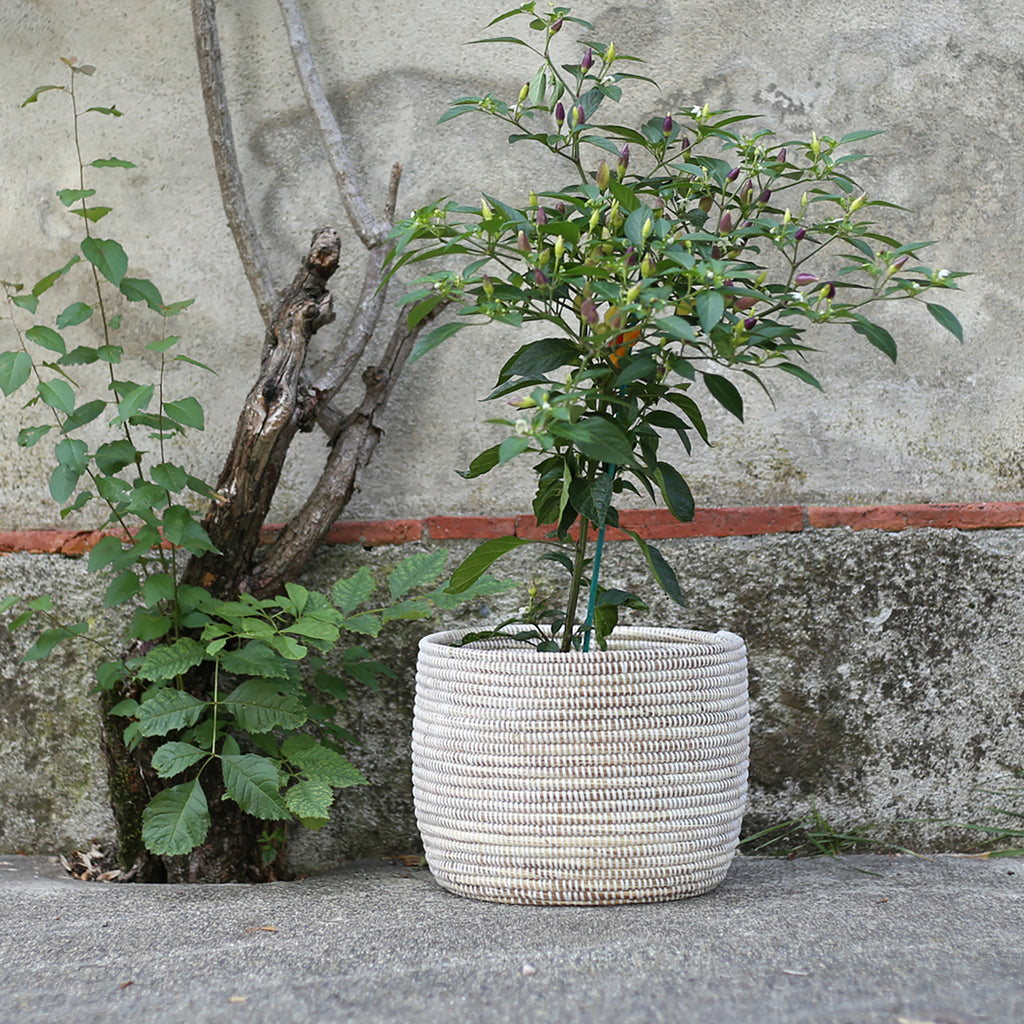 Woven Plant Pot Cover, Boho Wicker Basket Planter, Natural Minimalist - White Cover Pot