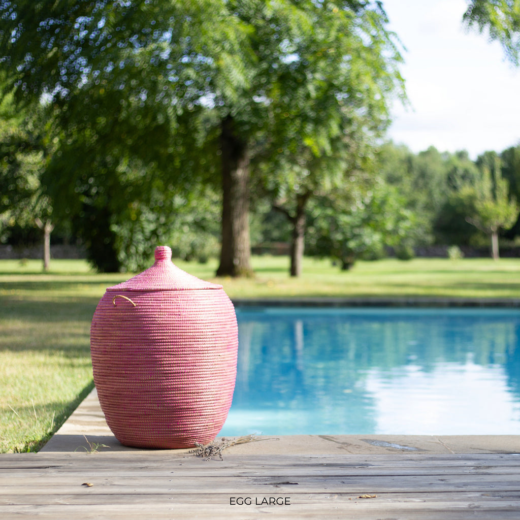 Wäschekorb mit Deckel, afrikanischer Flechtkorb - EGG Pink (Groß)