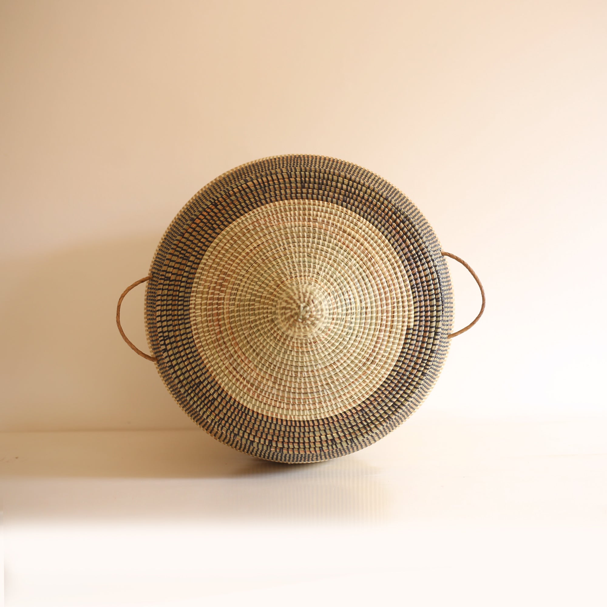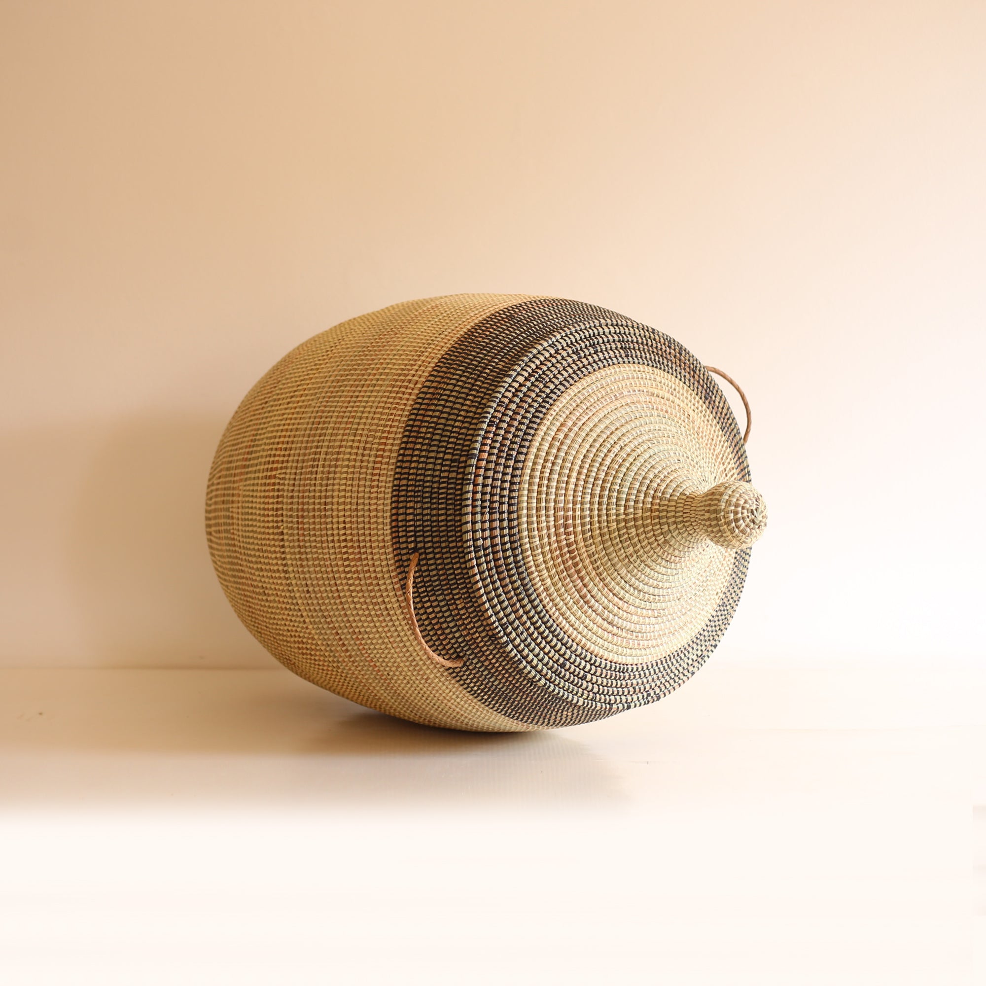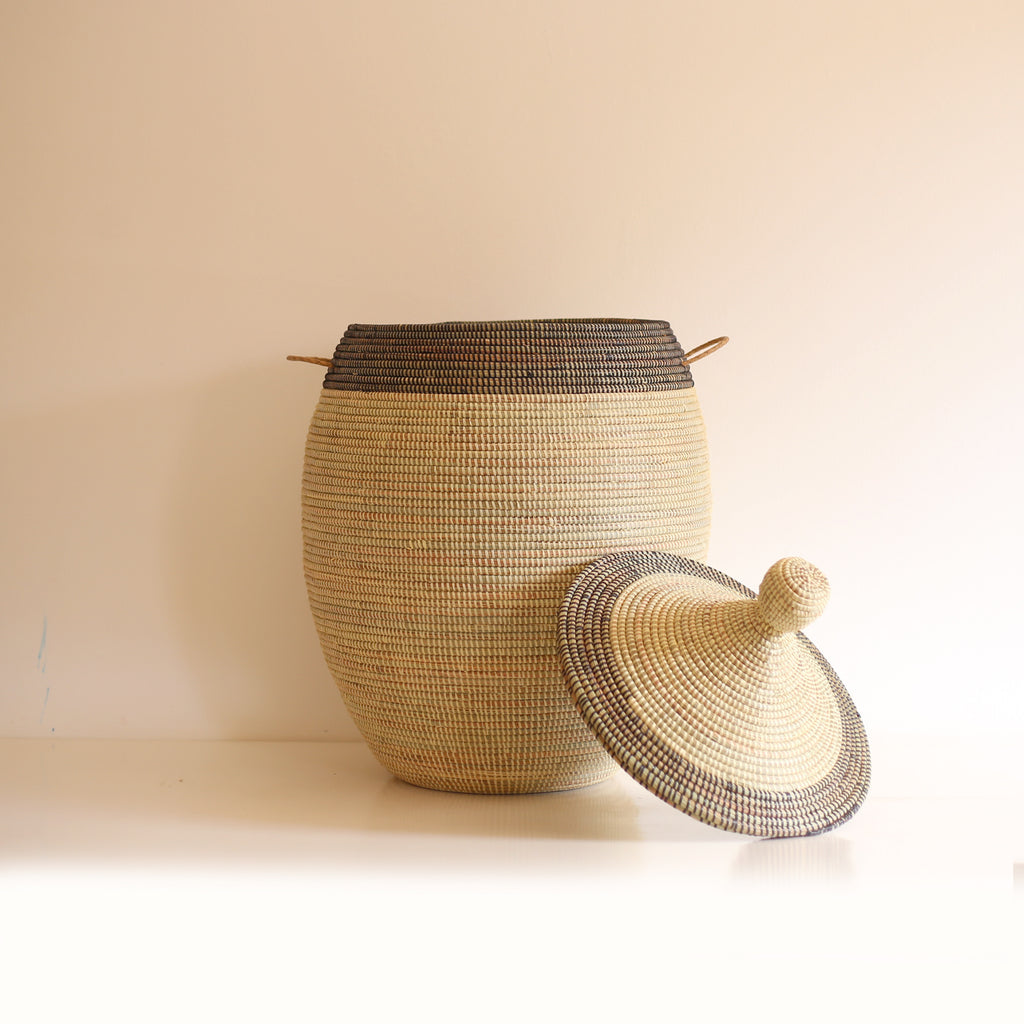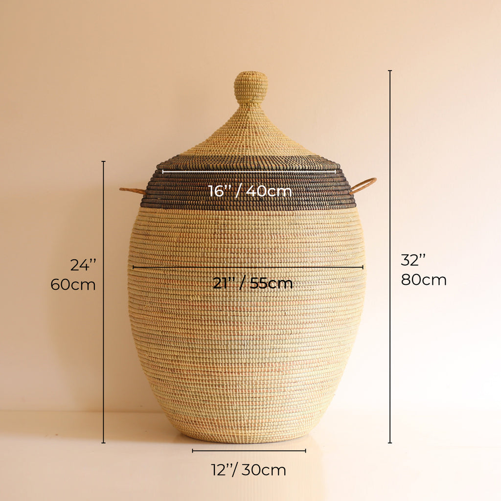 Wäschekorb mit Deckel, afrikanischer Flechtkorb - EGG Schwarz & Beige (Groß)