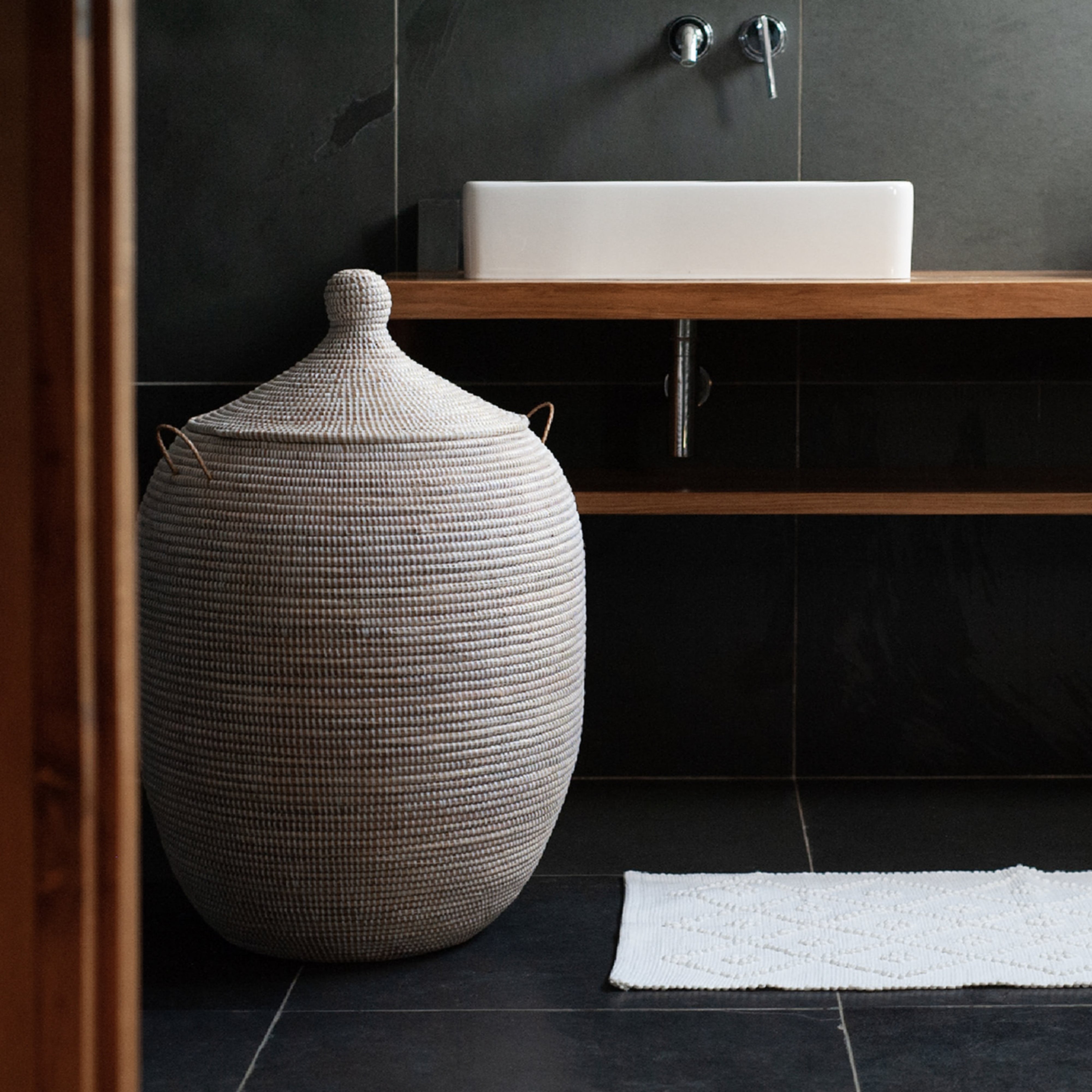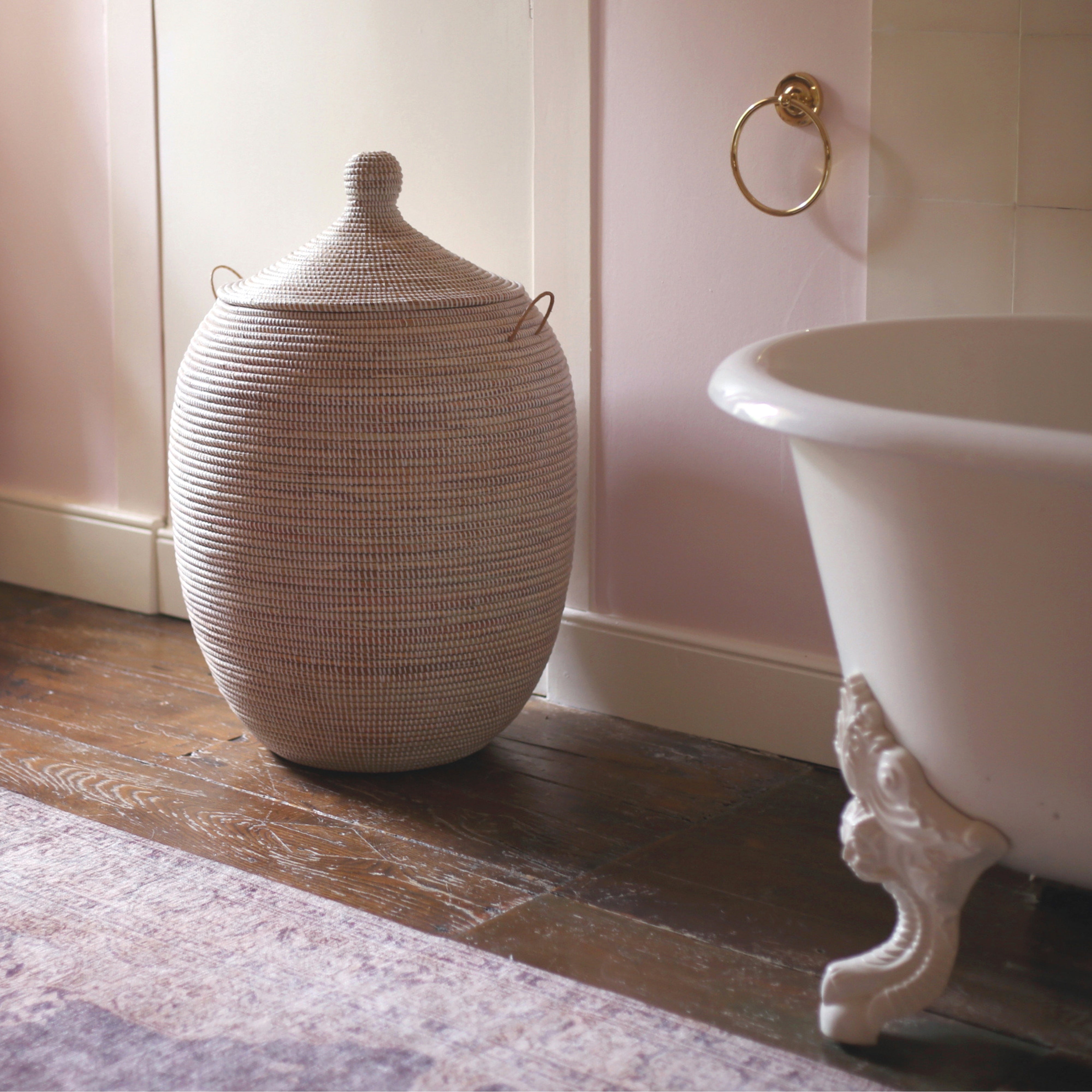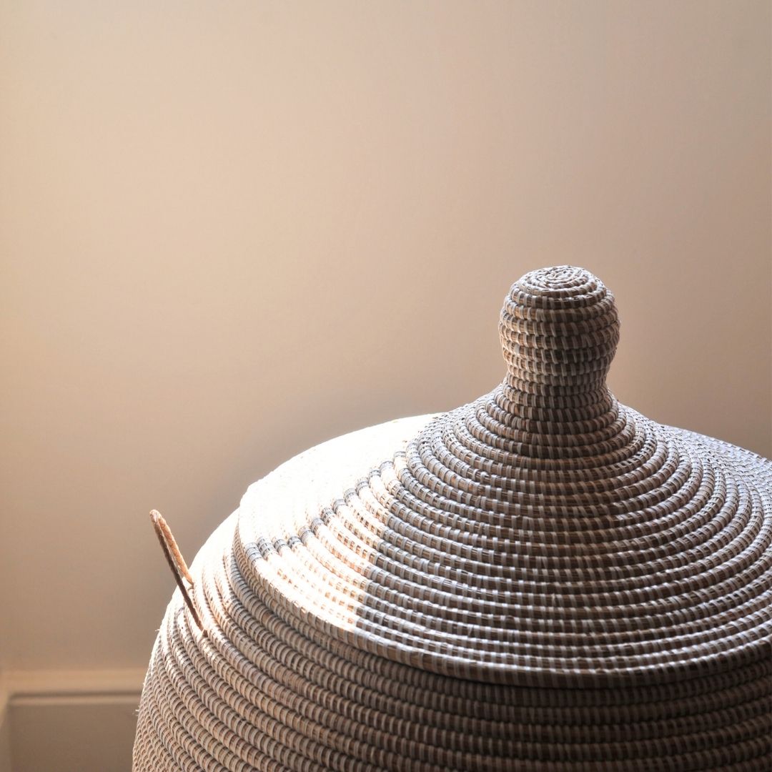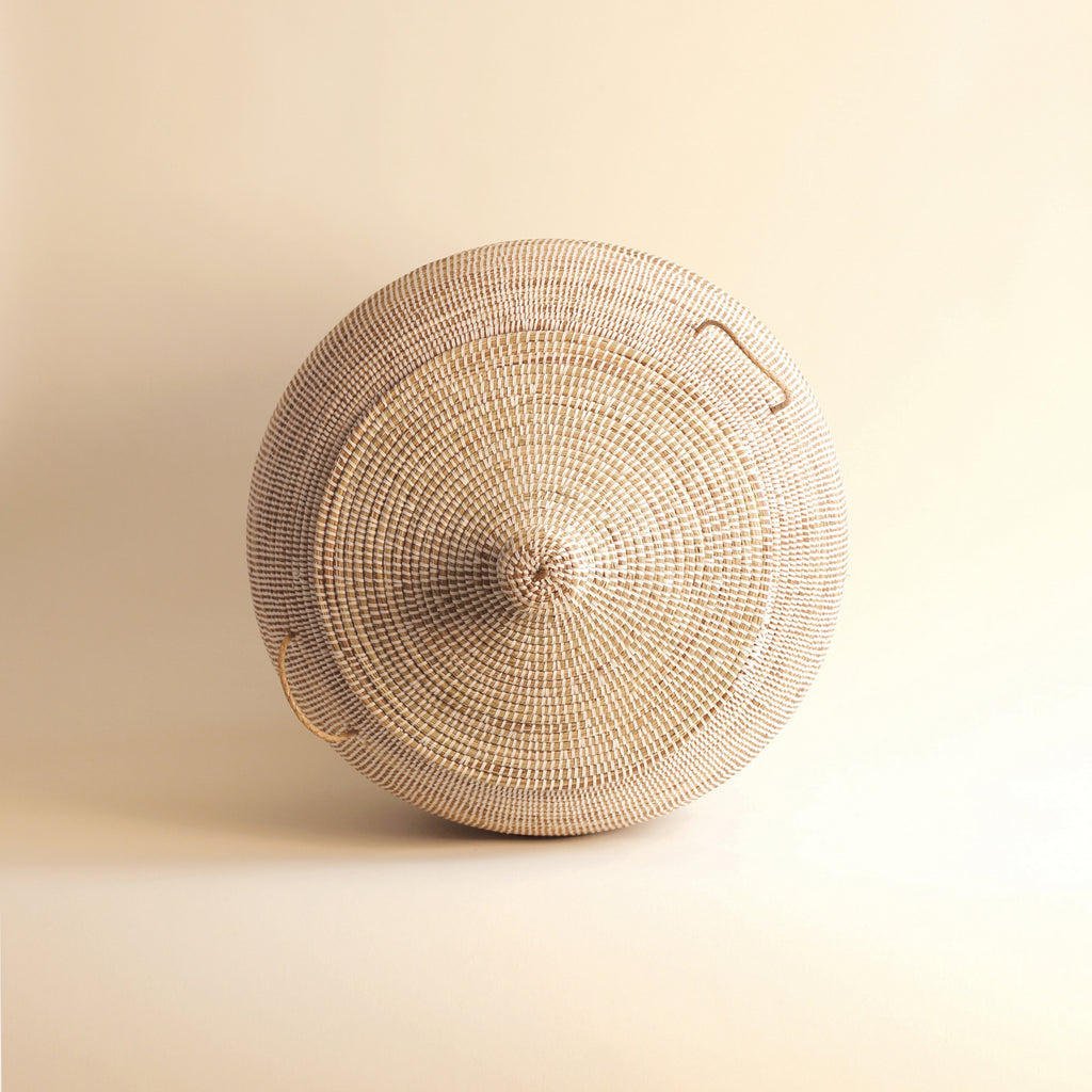 Wäschekorb mit Deckel, afrikanischer Flechtkorb - EIweiß (Groß)