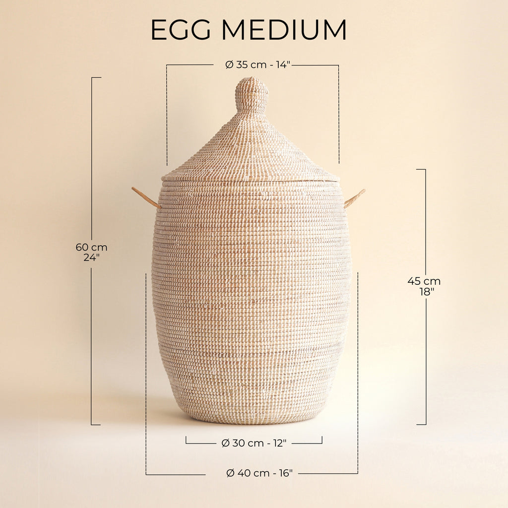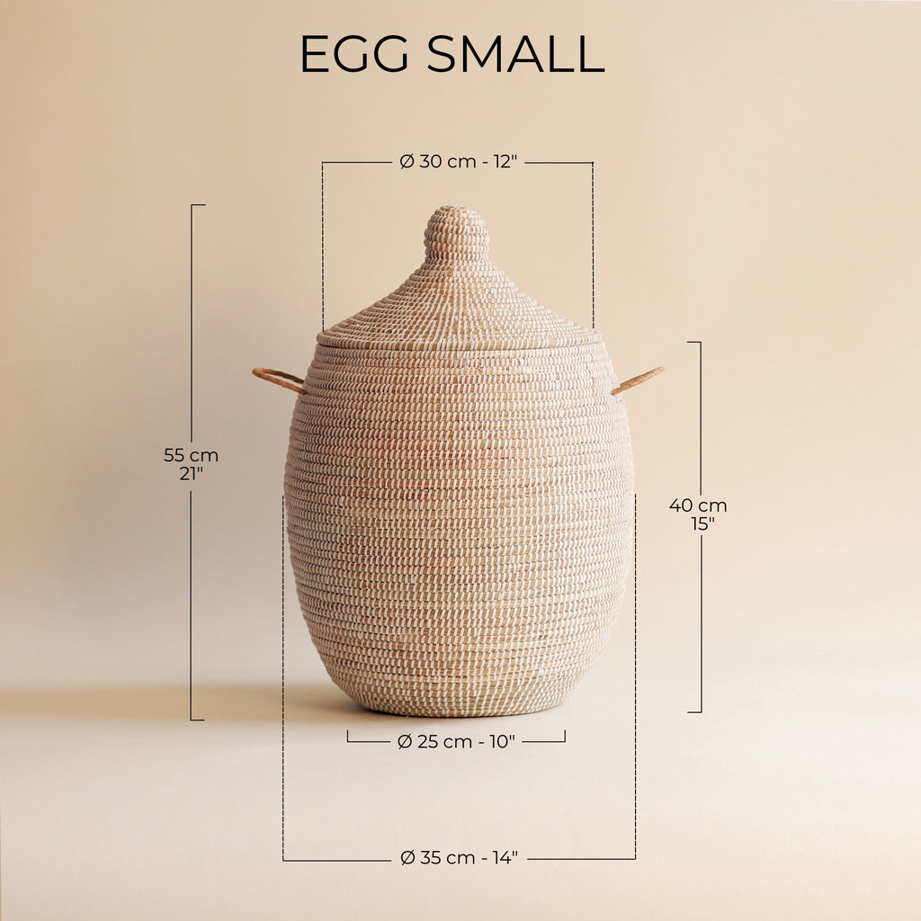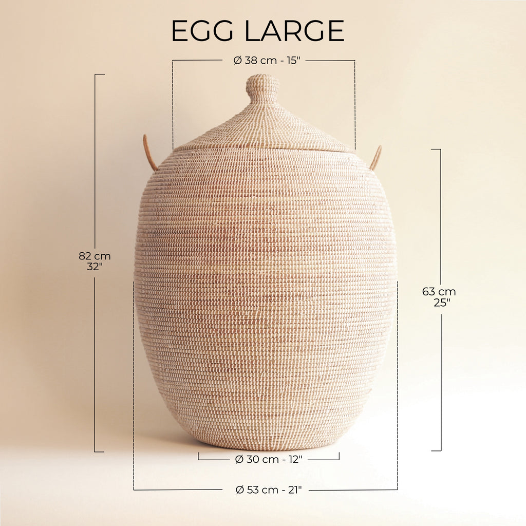 Verleihen Sie Ihrem Interieur mit unserem EGG-Korb eine natürliche Note. Diese von erfahrenen Kunsthandwerkern im Senegal handgewebten Körbe vereinen Nützlichkeit und Eleganz. Die natürlich schönen EGG-Körbe sind einzigartige Dekorationselemente, die sowohl praktisch als auch ästhetisch sind.