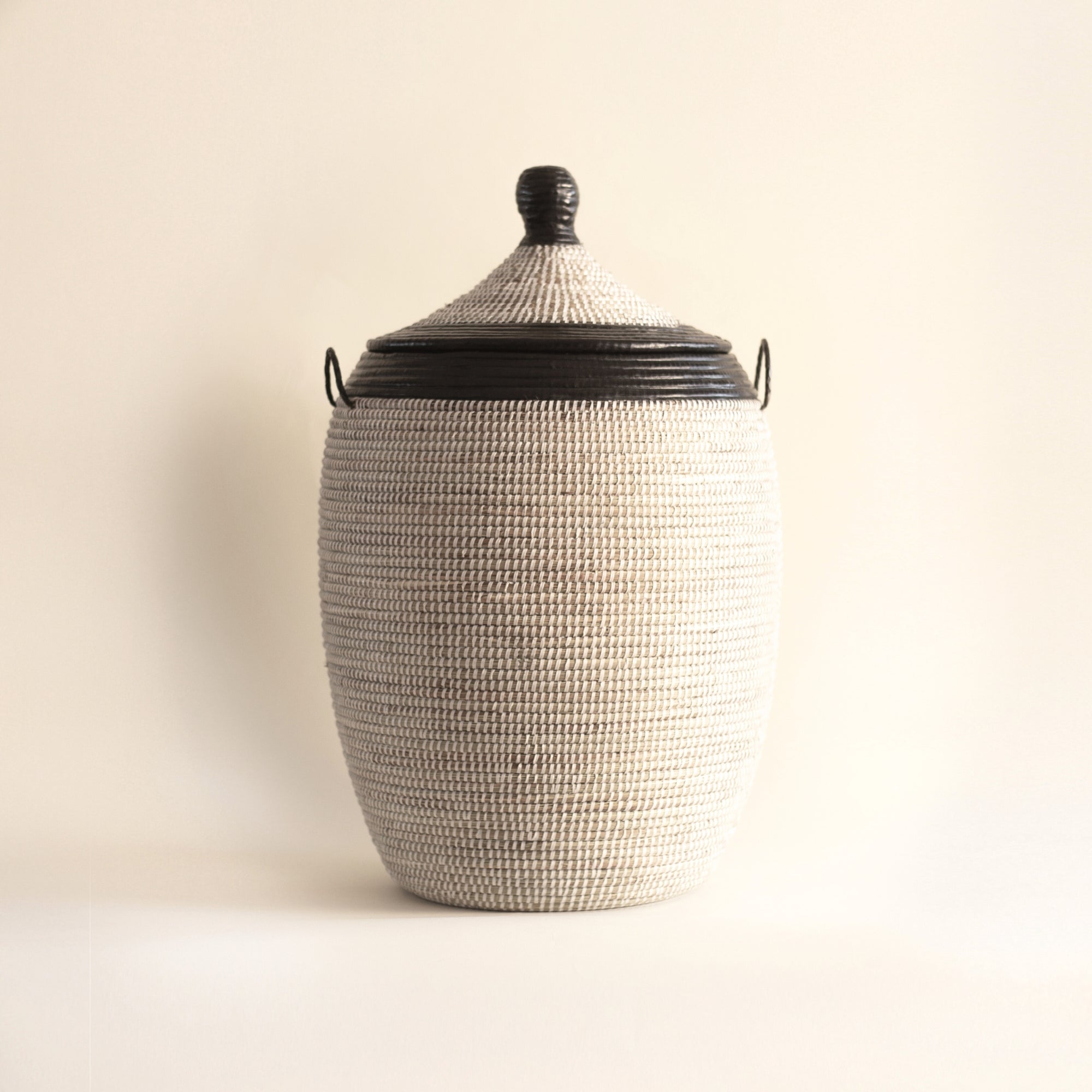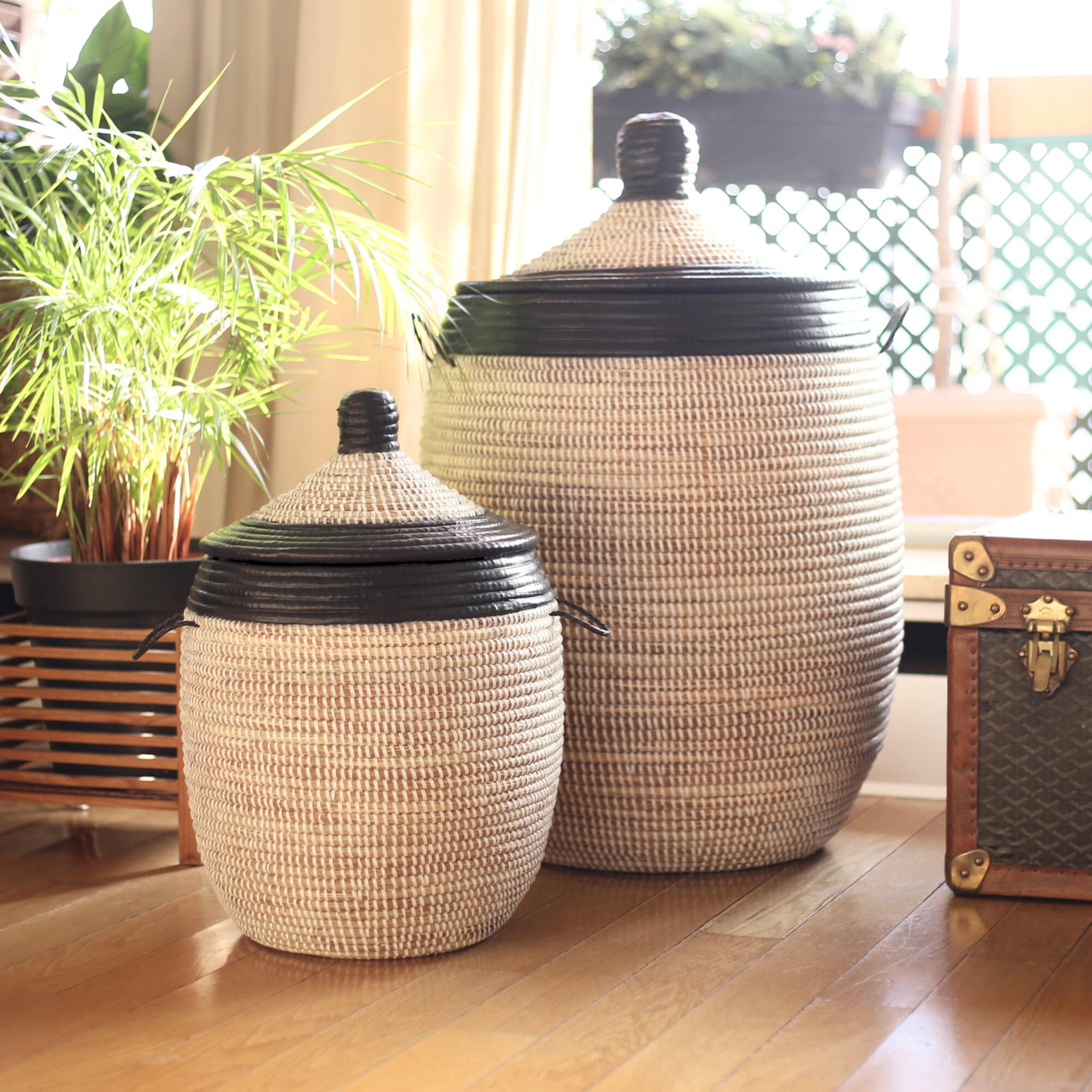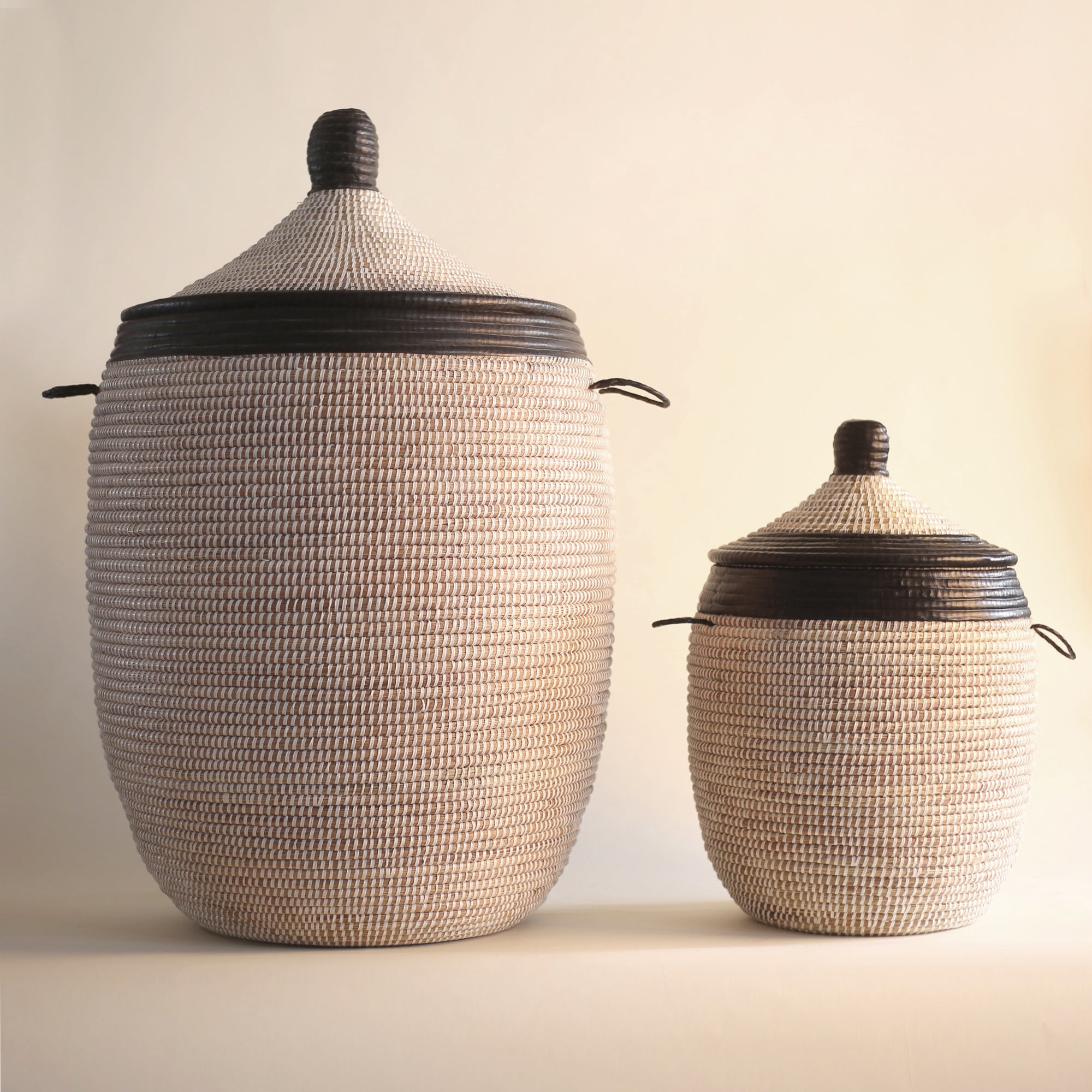 Verleihen Sie Ihrem Zuhause einen Hauch müheloser Eleganz mit unseren wunderschönen Seegraskörben – einer Aufbewahrungslösung, die ebenso funktional wie schön ist. Jeder Korb wird von erfahrenen Kunsthandwerkern im Senegal handgewebt und erzählt die Geschichte traditioneller Handwerkskunst, bei der natürliche Materialien auf authentisches Design treffen.