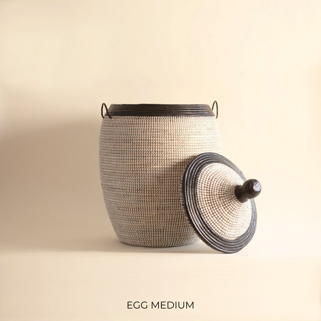 Der EGG-Korb ist ideal für aufgeräumte Räume und passt perfekt zu einem unkonventionellen, minimalistischen Wohnstil oder für alle, die vom Wabi-Sabi-Geist der Schönheit in der Einfachheit inspiriert sind.