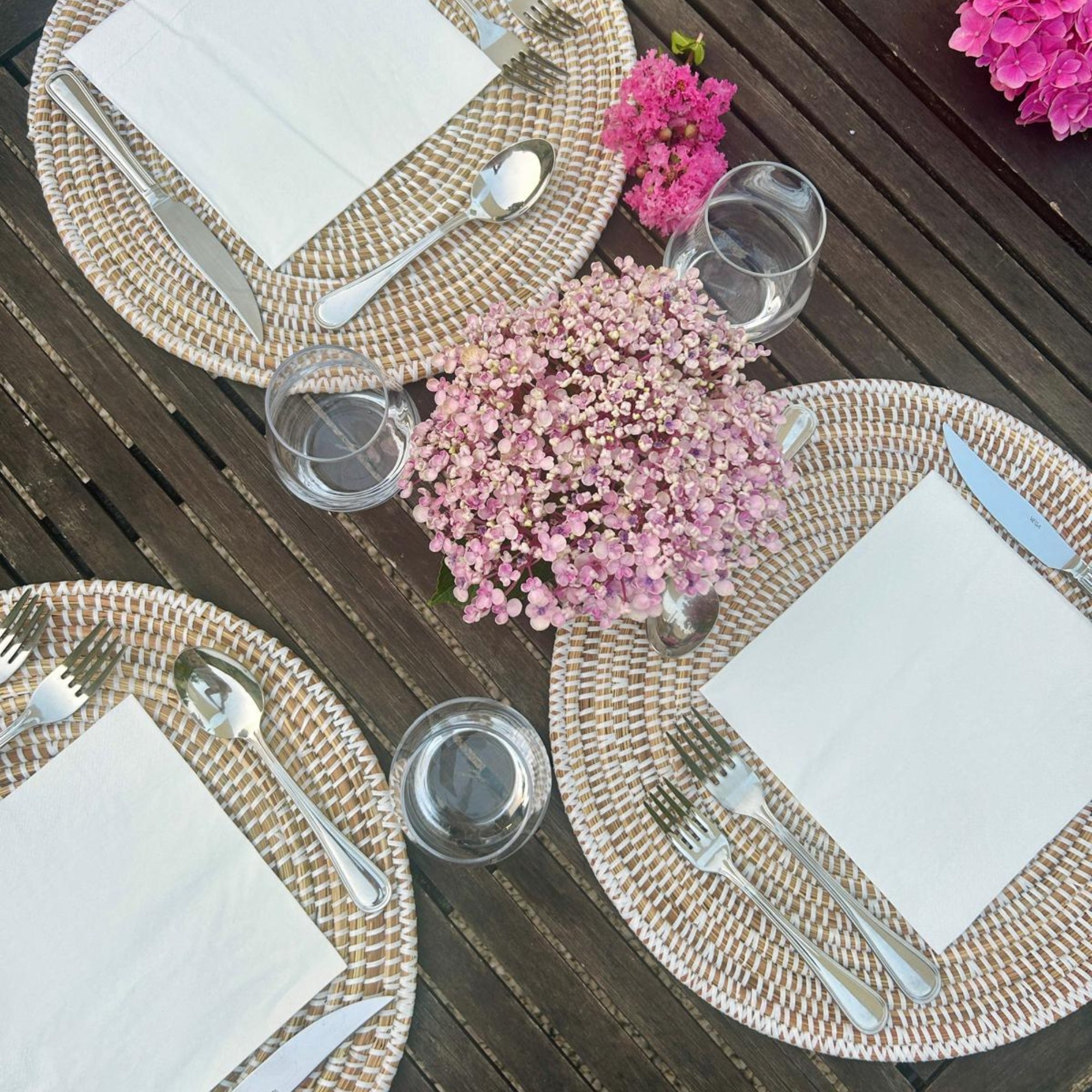 Natürliche Tischsets aus Seegras – Weiß – Handgefertigte runde Tischsets, Boho-Umweltfreundliches Wohndekor
