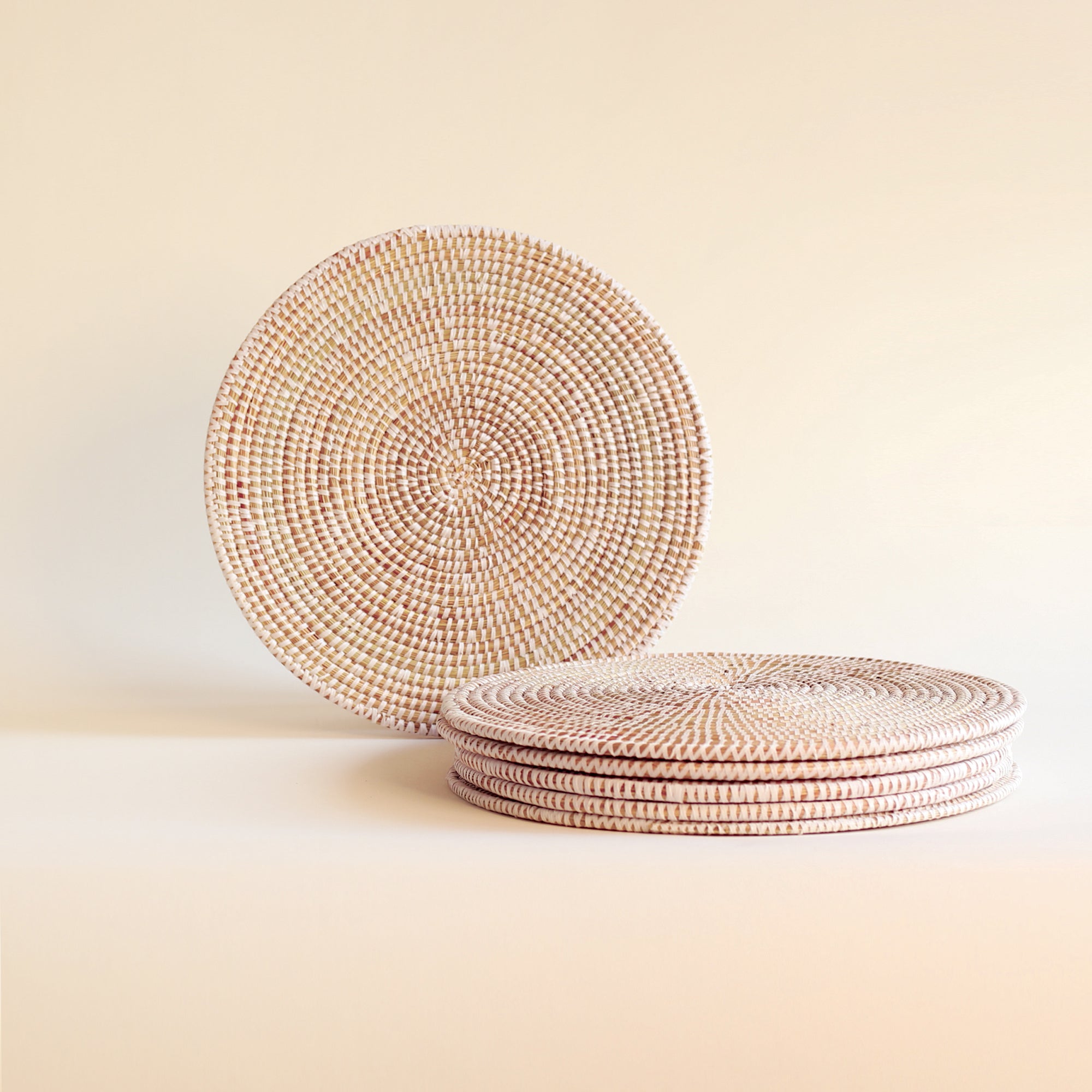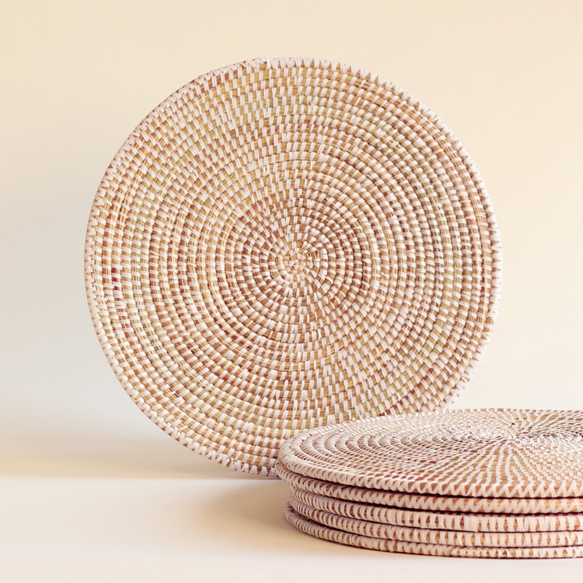 Da jedes Set handgefertigt ist, machen leichte Abweichungen in Form und Größe jedes Tischset einzigartig und unterstreichen die Schönheit der handwerklichen Verarbeitung.