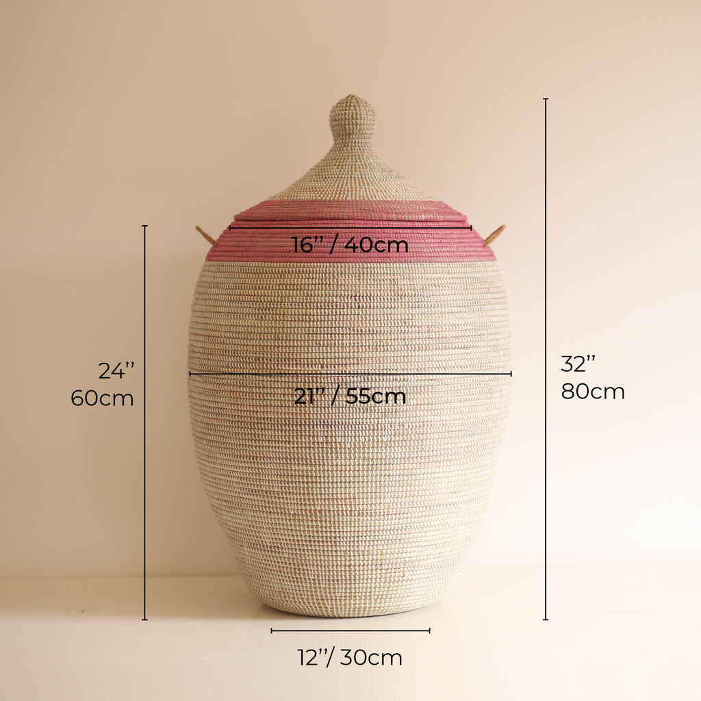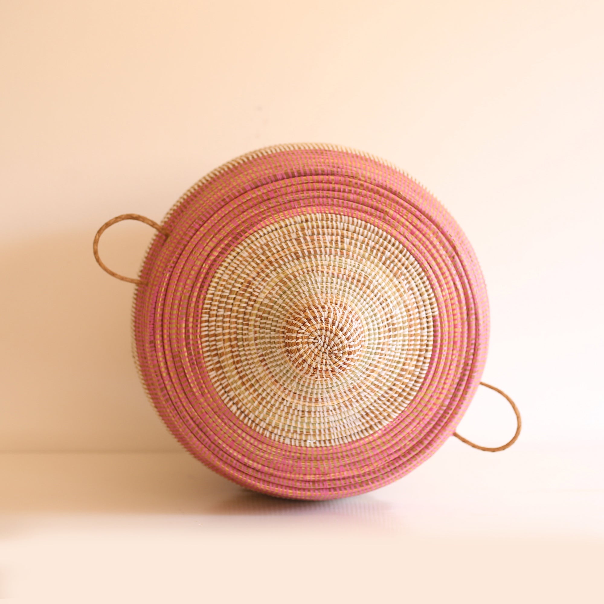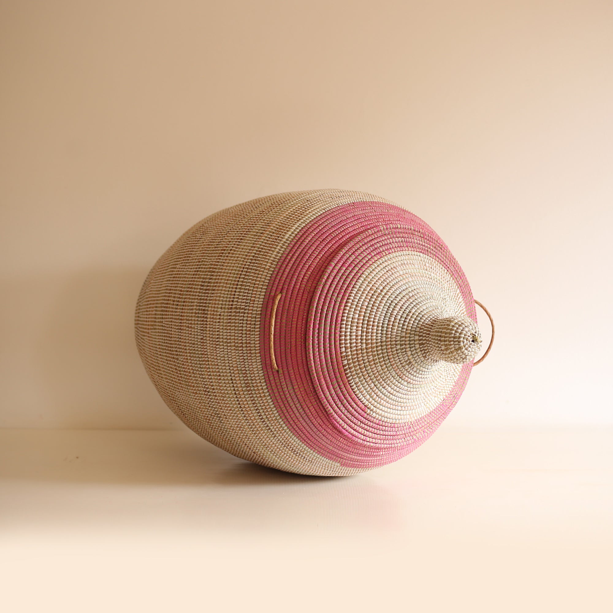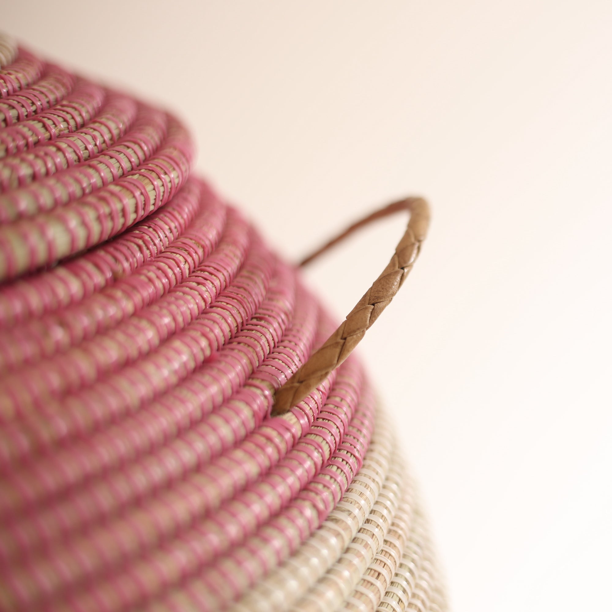 Wäschekorb mit Deckel, afrikanischer Flechtkorb - EGG Pink & White (Groß)