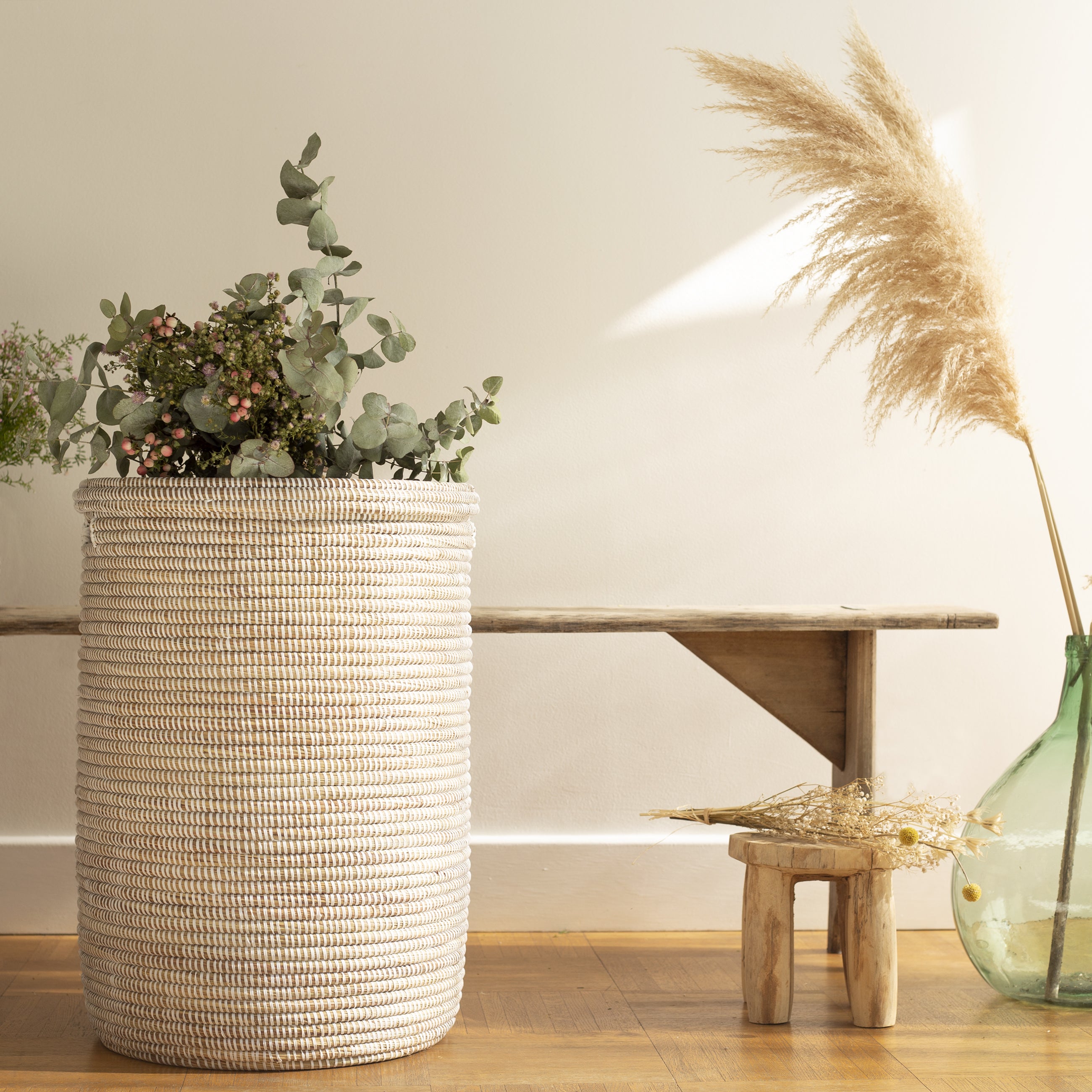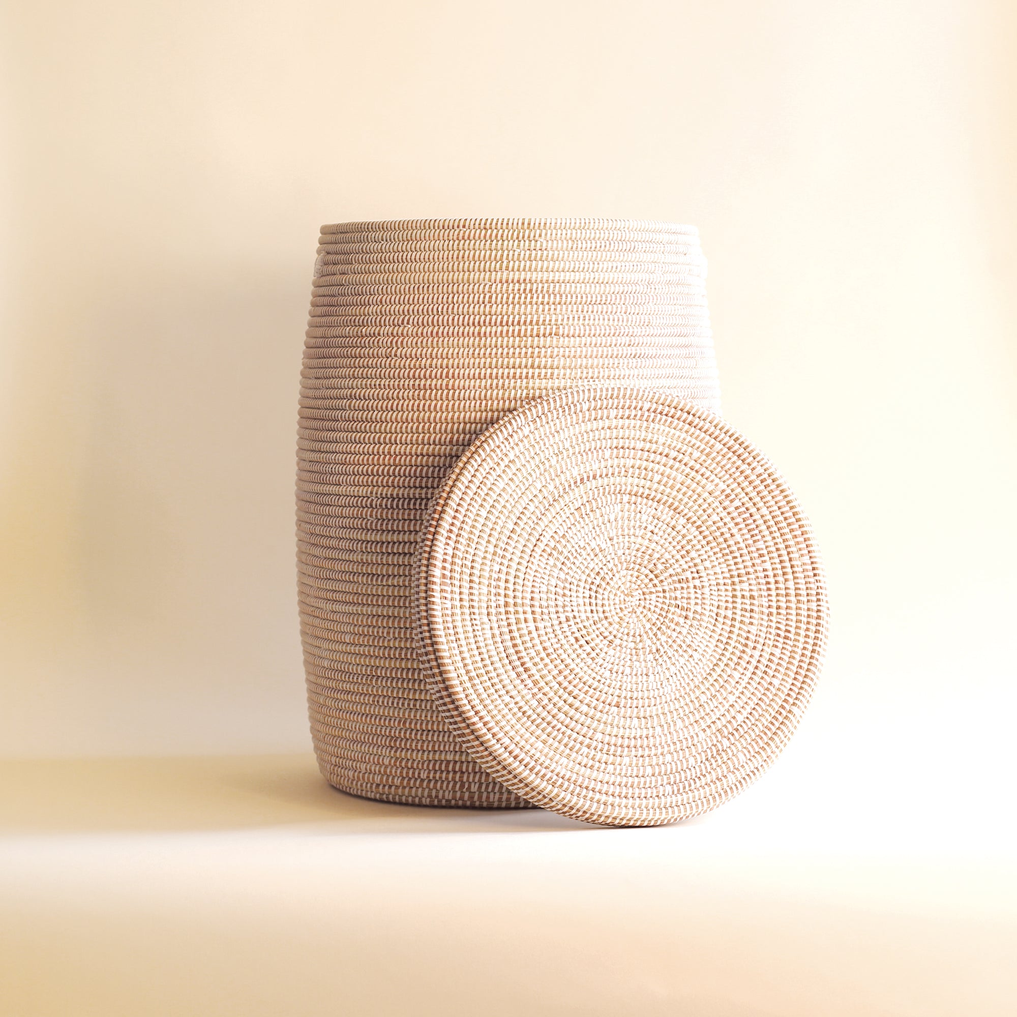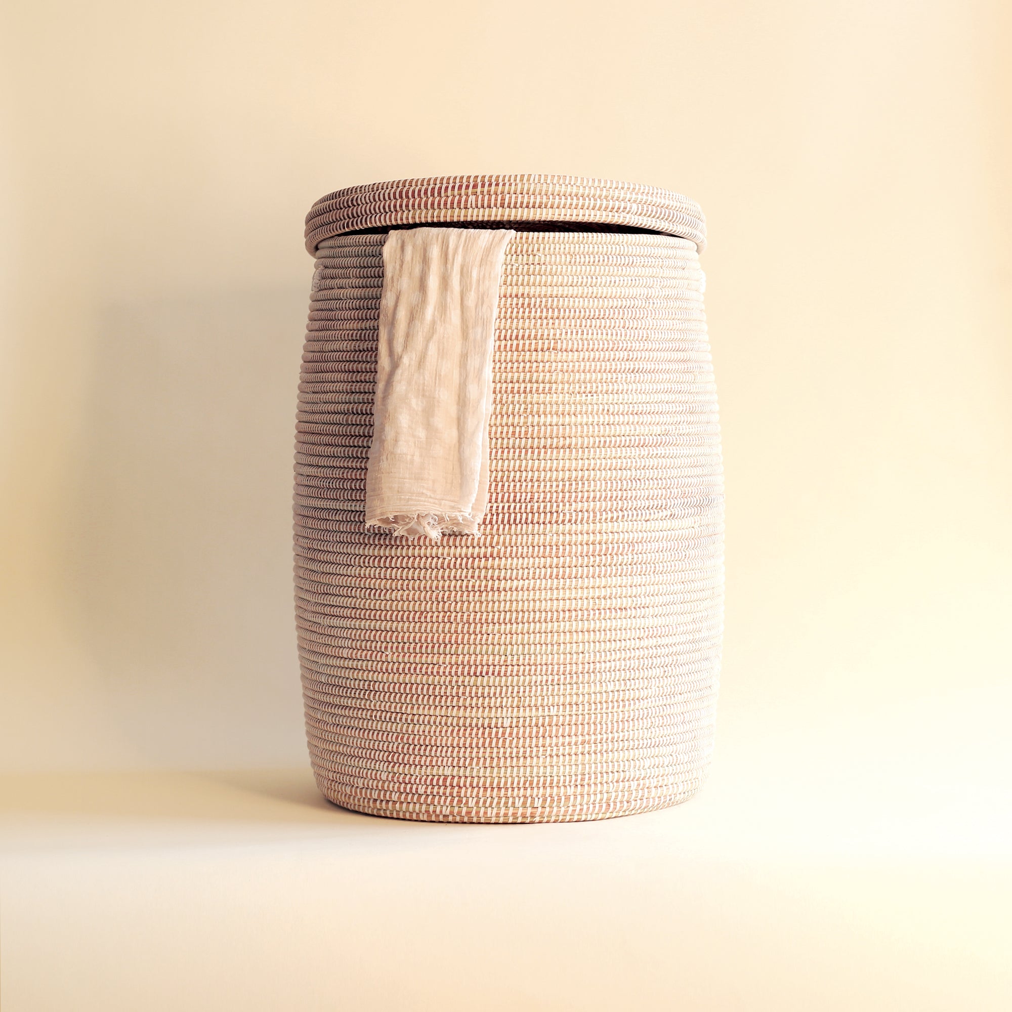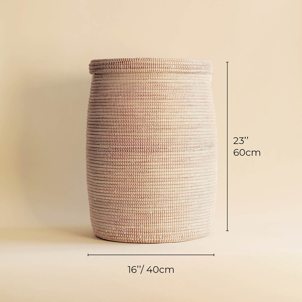 Bring a touch of natural softness to your space with our laundry basket with lid, a perfect blend of function and style. Hand-woven by talented artisans in Senegal, this basket reflects a harmonious blend of contemporary design and ancestral craftsmanship.