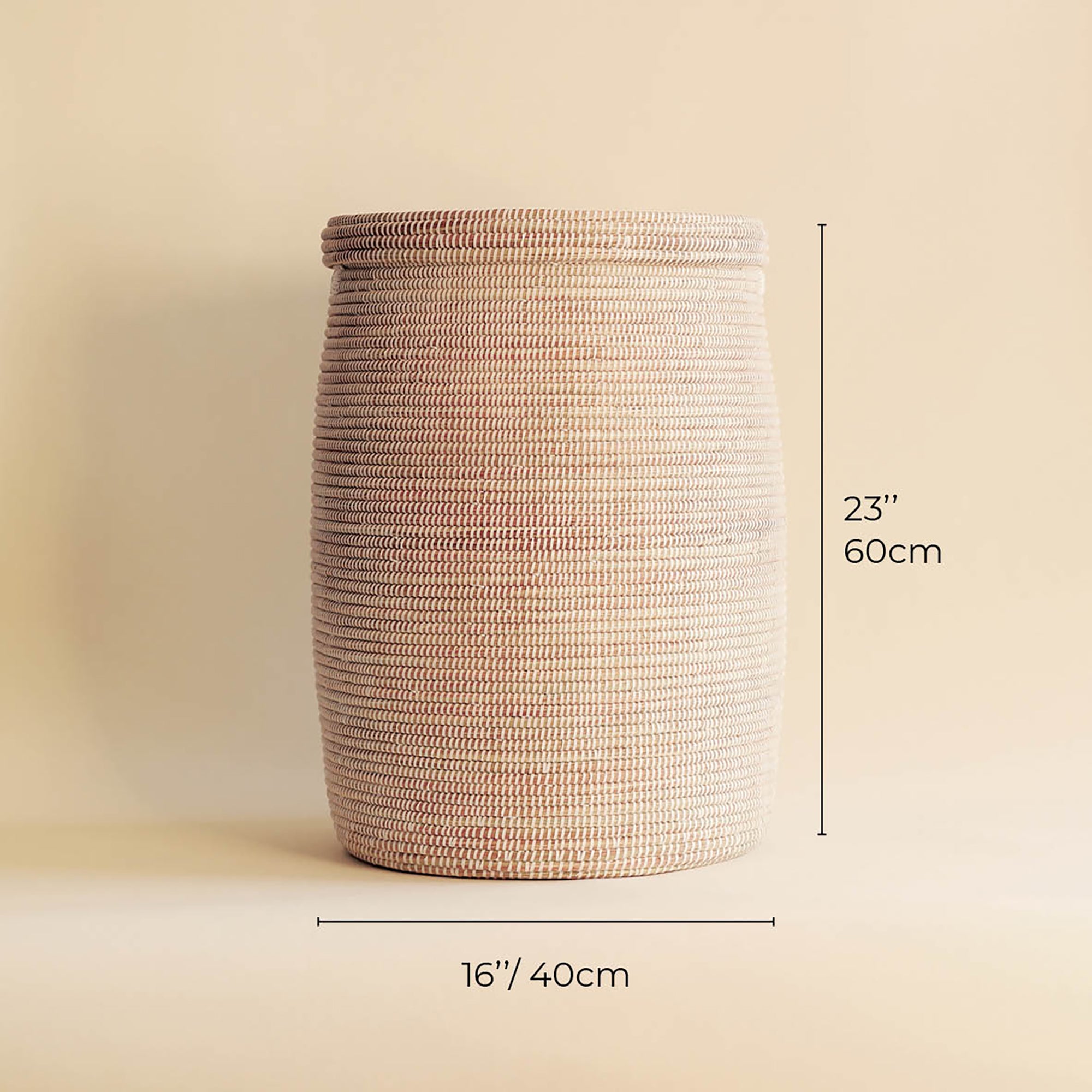 Made from Typha, a natural material, it adds a sleek element to any room while providing a practical storage solution. Its sleek cylindrical shape and tight-fitting lid make it ideal for keeping a space tidy and organised.